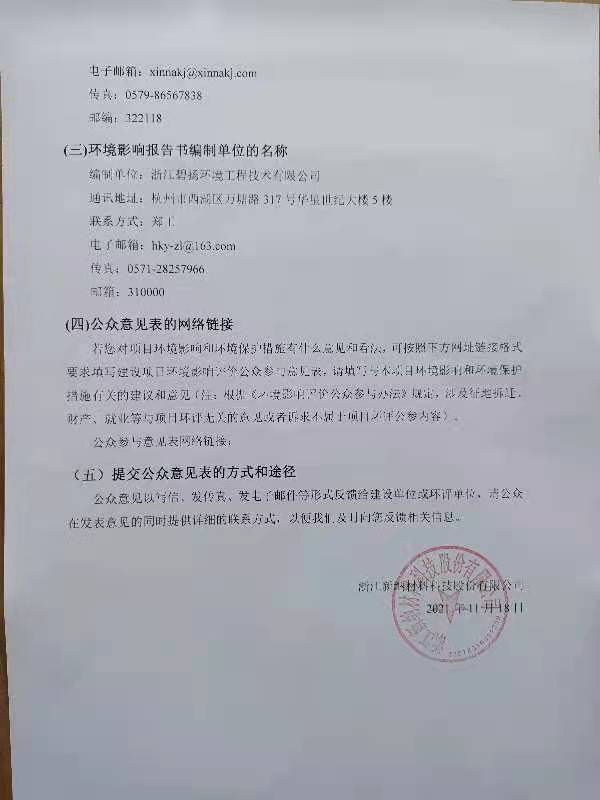 根據(jù)《中華人民共和國環(huán)境影響評價法》及《環(huán)境影響評價公眾參與辦法》(生態(tài)環(huán)境部令第4號)等相關(guān)規(guī)定,現(xiàn)將浙江新納材料科技股份有限公司白炭黑研發(fā)基地建設(shè)項目環(huán)境影響評價的有關(guān)信息予以公告,并征求公眾意見。